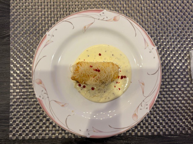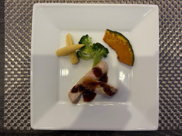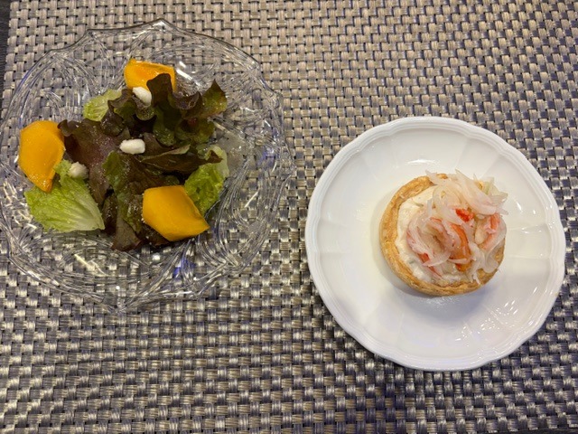 カニのパイと、サラダに入っていた柿がおいしかった!(笑)。